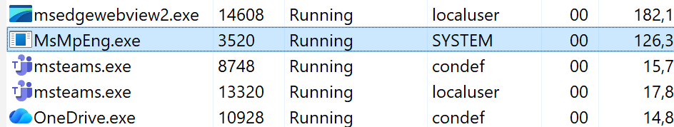 Since this range is only running Windows Defender, the target process to focus on is MsMpEng.exe. To gather the PID, I'm taking the boring route and viewing the process directly on the victim machine since I'm only focused on the process activity, not building a threat simulation.