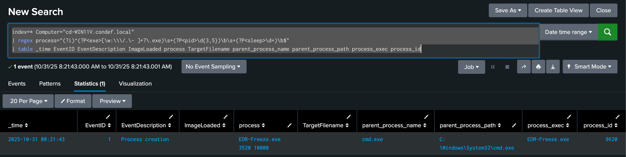 Now it's time to execute EDR-Freeze and create telemetry to analyze host-based activity of the tool. I'll be using my ConstructingDefense Ludus range as it already has Splunk and Sysmon running. See my previous post about automating range deployments.