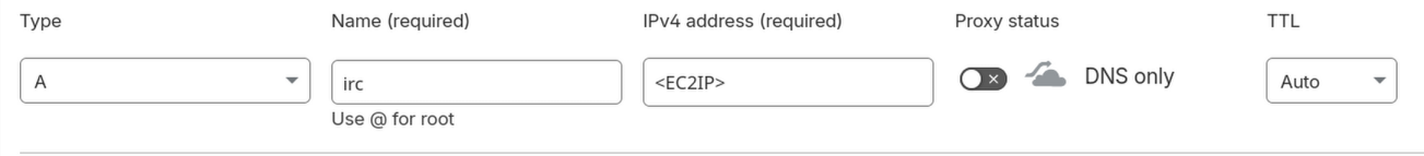 Next was to actually install Ergo. Since this is an AWS-themed post, I won't go over the install steps. They're well laid out here. The great thing about Ergo is it's configured with a single YAML file and for right now, most of my settings are default except the network name and server name. The server name is the subdomain of a domain I own. All I had to do was create an A record using the EC2 public IP and point it to a subdomain.