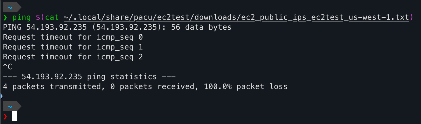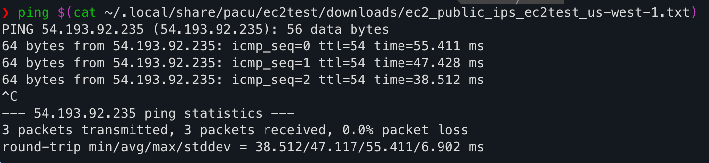 [ec2__enum] 1 public IP address(es) found and added to text file located at: ~/.local/share/pacu/ec2test/downloads/ec2_public_ips_ec2test_us-west-1.txt