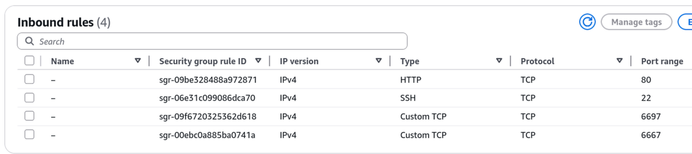 - Port 22 is open but restricted to just my WAN IP at home so I can connect to the EC2 instance.