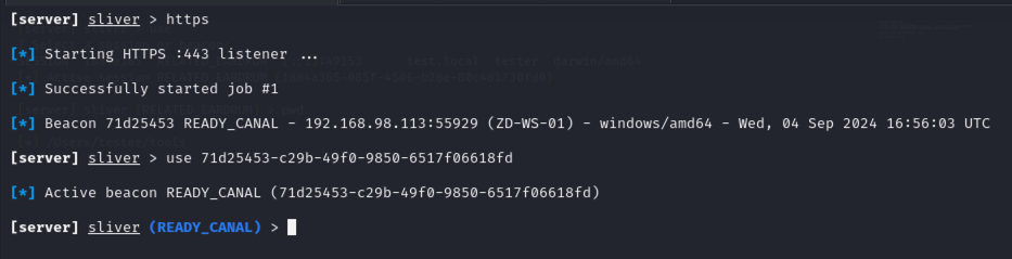 Everything's ready so it's time to execute! Following execution, Sliver got a callback.